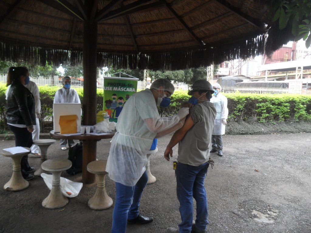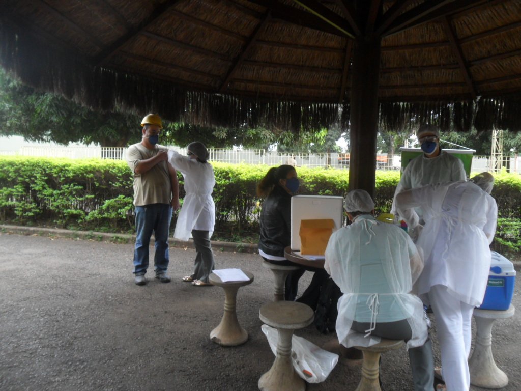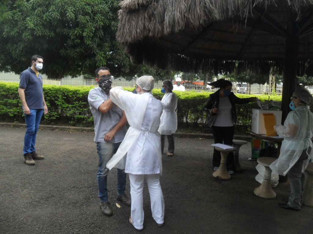 Foi instalado um posto de atendimento dentro da Brejeiro para aplicar as vacinas nos colaborares e seus familiares. Para realizar a vacinação, a equipe da Unimed adotou todas as medidas de proteção contra a Covid-19.